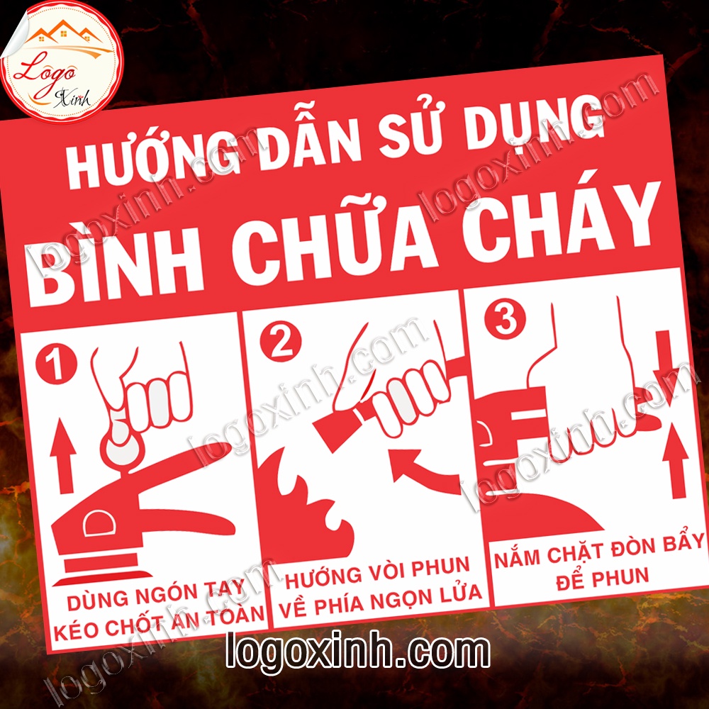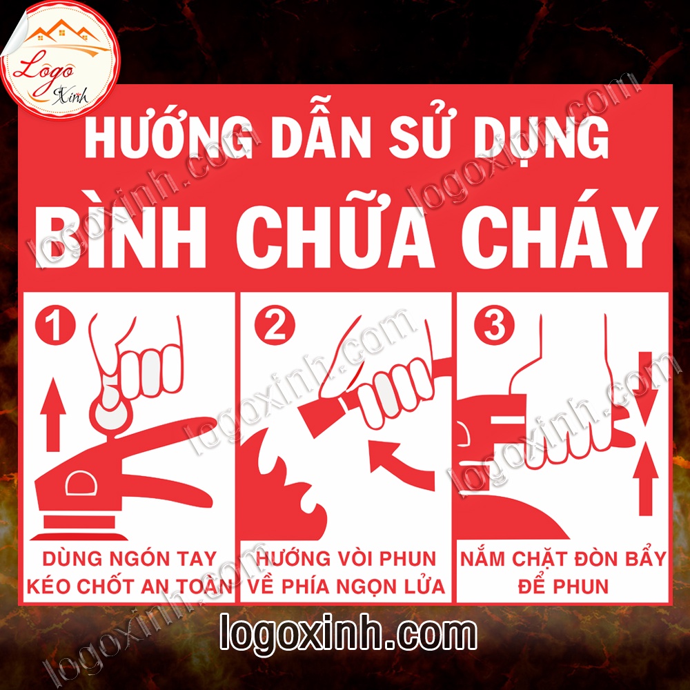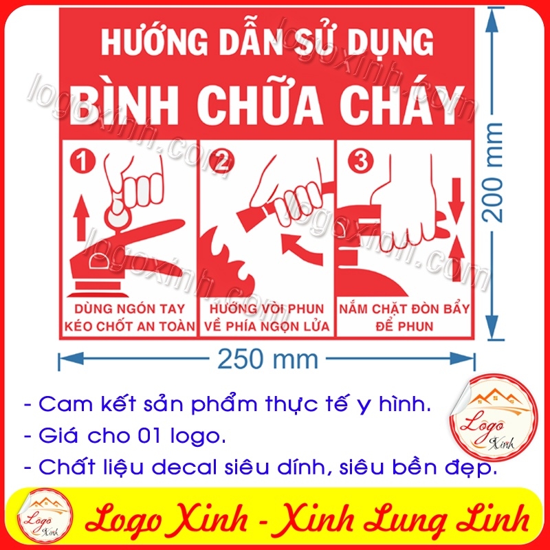LOGO STICKER TEM DÁN HƯỚNG DẪN SỬ DỤNG BÌNH CỨU HỎA, BÌNH CHỮA CHÁY, FIRE EXTINGUISHER USER MANUAL GUIDANCE
