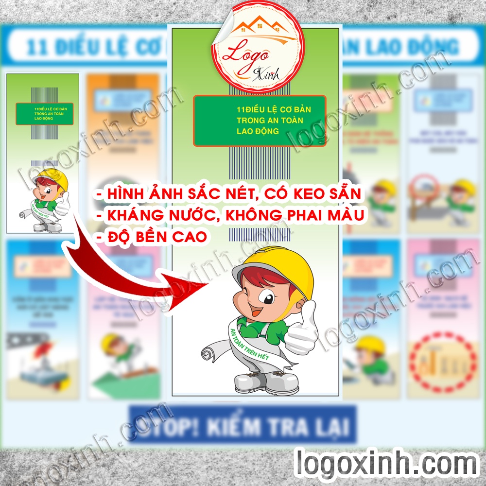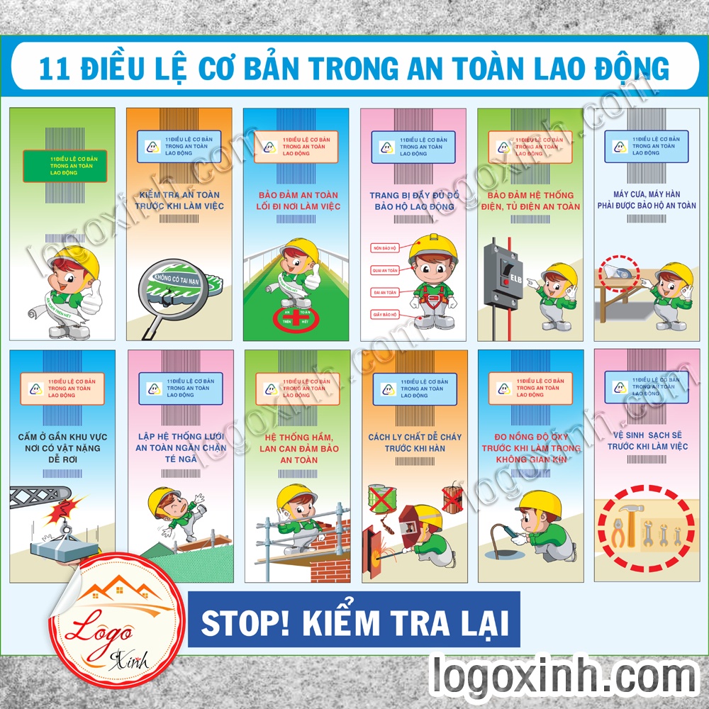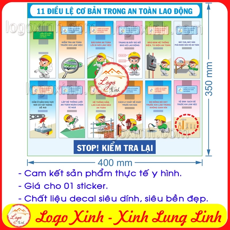 LOGO TEM STICKER 11 ĐIỀU LỆ AN TOÀN LAO ĐỘNG DÙNG CHO NHÀ MÁY, CÔNG XƯỞNG- LABOR RULES -BIỂN CẢNH BÁO AN TOÀN LAO ĐỘNG