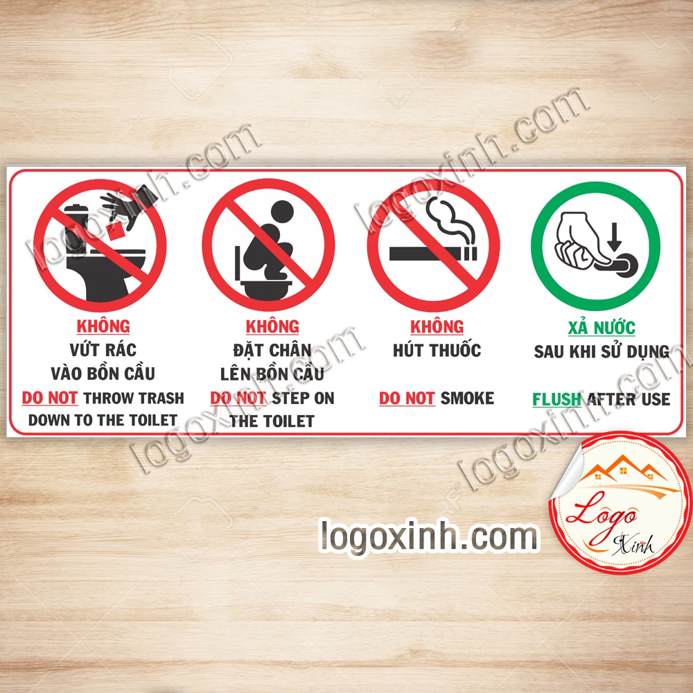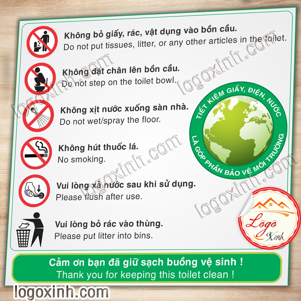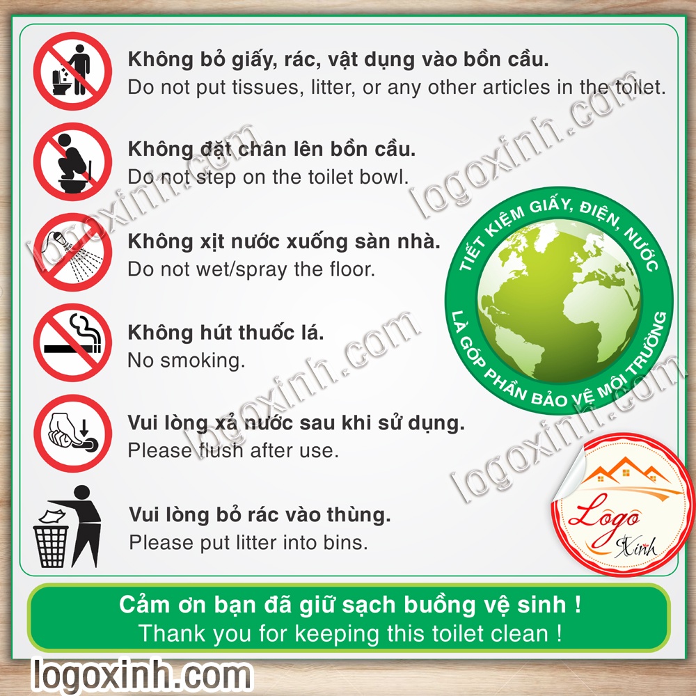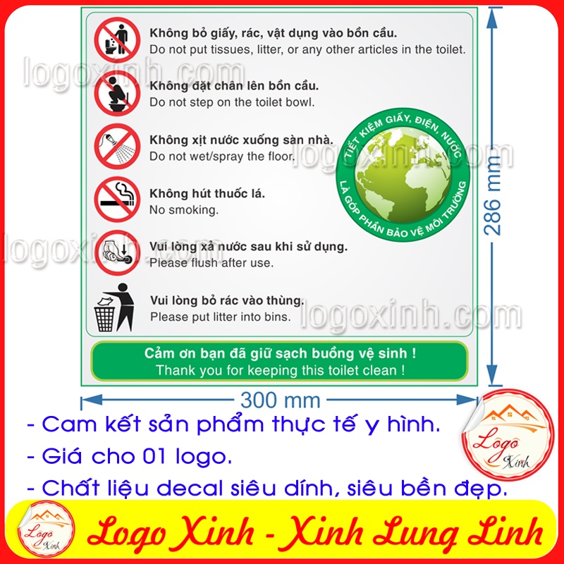 LOGO TEM STICKER BIỂN BẢNG NỘI QUY NHÀ VỆ SINH - TOILET RESTROOM RULES - HƯỚNG DẪN GIỮ VỆ SINH TRONG TOILET NHÀ TẮM
