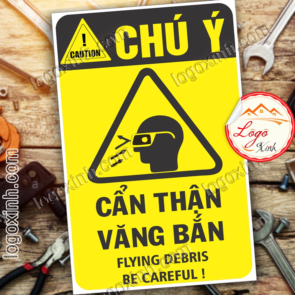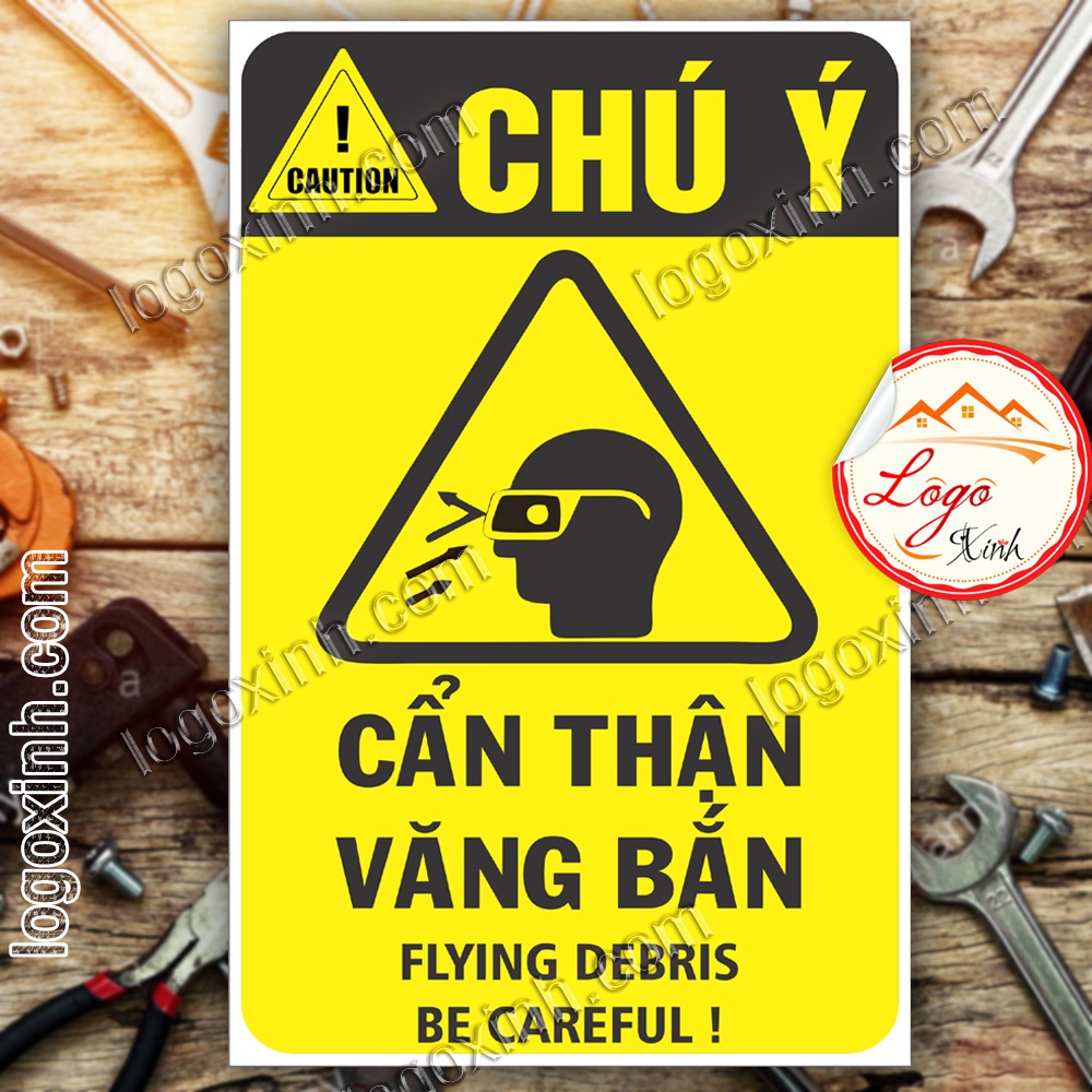 LOGO TEM STICKER CẢNH BÁO CẨN THẬN VĂNG BẮN , FLYING DEBRIS - BIỂN CẢNH BÁO AN TOÀN LAO ĐỘNG